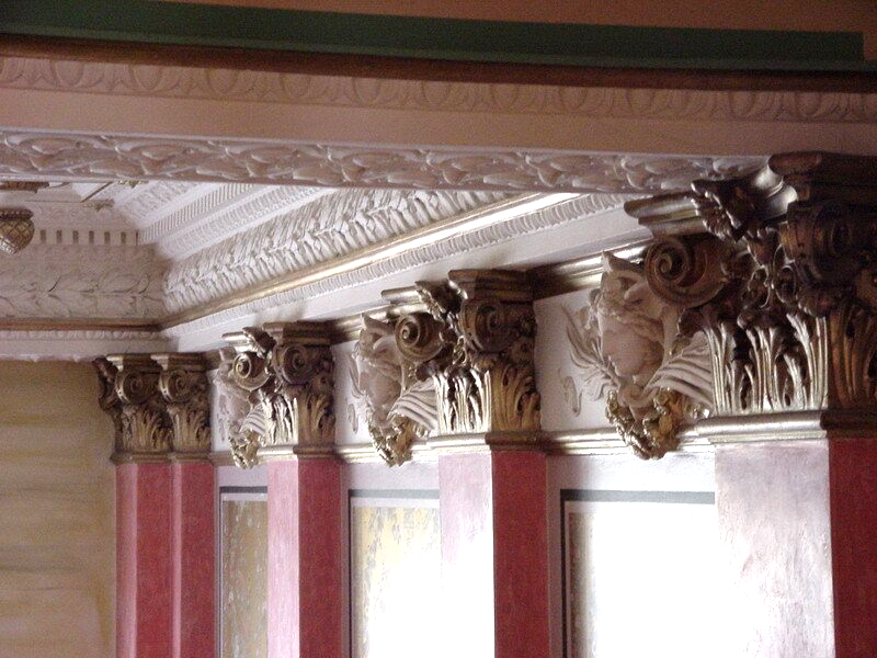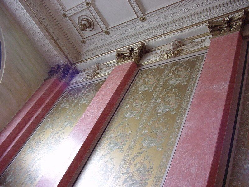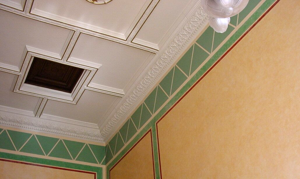 Lasurtechniken, Kalkmarmortechniken, Stein-Imitationstechniken, Schablonierungstechniken, Stuck- und Goldbemalung oder Tabezierung.